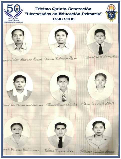 EGRESADOS DE LA DÉCIMO QUINTA GENERACIÓN DE LICENCIADOS EN EDUCACIÓN PRIMARIA (1998-2002)