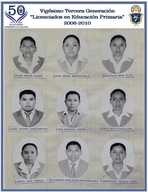 EGRESADOS DE LA VIGÉSIMO TERCERA GENERACIÓN DE LICENCIADOS EN EDUCACIÓN PRIMARIA "ING. ABEL TREJO GONZÁLEZ" (2006-2010)