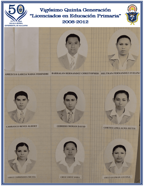 EGRESADOS DE LA VIGÉSIMO QUINTA GENERACIÓN DE LICENCIADOS EN EDUCACIÓN PRIMARIA "PROFR. RAFAEL RAMÍREZ CASTAÑEDA" (2008-2012)