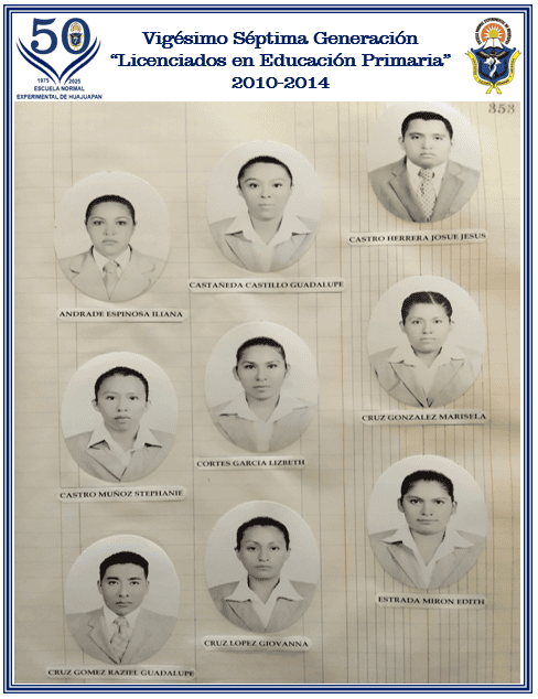 EGRESADOS DE LA VIGÉSIMO SÉPTIMA GENERACIÓN DE LICENCIADOS EN EDUCACIÓN PRIMARIA "LIC. LUIS DE GUADALUPE MARTÍNEZ RAMÍREZ" (2010-2014)