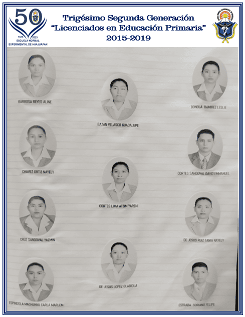 EGRESADOS DE LA TRIGÉSIMO SEGUNDA GENERACIÓN DE LICENCIADOS EN EDUCACIÓN PRIMARIA "JOSÉ VASCONCELOS"(2015-2019)