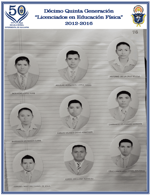 EGRESADOS DE LA DÉCIMO QUINTA GENERACIÓN DE LA LICENCIATURA EN EDUCACIÓN FÍSICA (2012-2016)