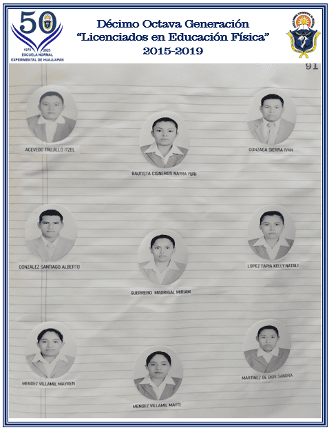 EGRESADOS DE LA DÉCIMO OCTAVA GENERACIÓN DE LA LICENCIATURA EN EDUCACIÓN FÍSICA "JOSÉ VASCONCELOS"(2015-2019)